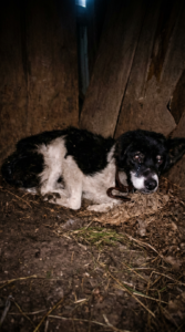 Near a fence, the dog was curled into himself, watching us. His body shook uncontrollably as he tried to survive the freezing night with the little strength he had left.