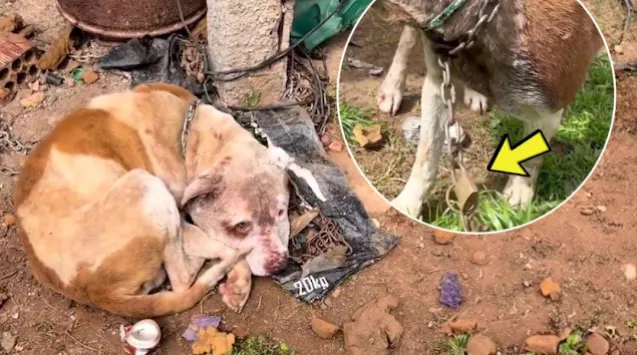 When rescuers arrived after receiving an urgent call for help, they were met with a sight that shook their hearts—a scene of unimaginable neglect. Two dogs were chained, their bodies frail and weak from severe malnutrition. The gravity of their condition was apparent. One dog was so emaciated it could barely stand, while the other, only slightly more mobile, seemed to be desperately pleading for help. Despite the unbearable pain they were enduring, both dogs remained eerily calm, perhaps understanding that, at last, aid had arrived.